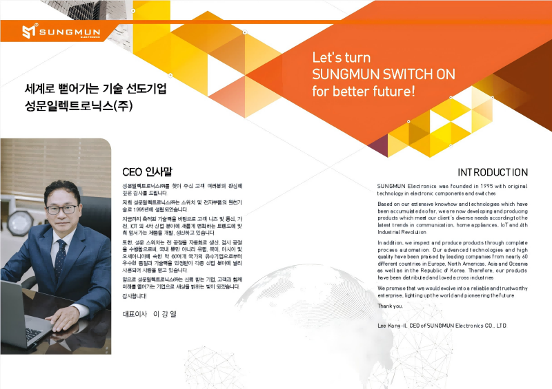 SUNGMUN Electronics was founded in 1995 with original technology in electronic components and switches. Based on our extensive knowhow and technologies wh...