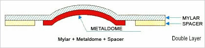 The double-layer PETMetal Dome Array differs from single-layer conductive film in that it includes an additional Spacer layer, allowing the dome to adhere better to the Mylar and maintain good contact with the circuit board, resulting in improved tactile feedback (similar to the "dome" effect in membrane switches). Additionally, the ventilation holes on the double-layer conductive film more effectively prevent the PET layer from being scratched by the sharp edges of the dome and prevent dust from entering the PET layer.
