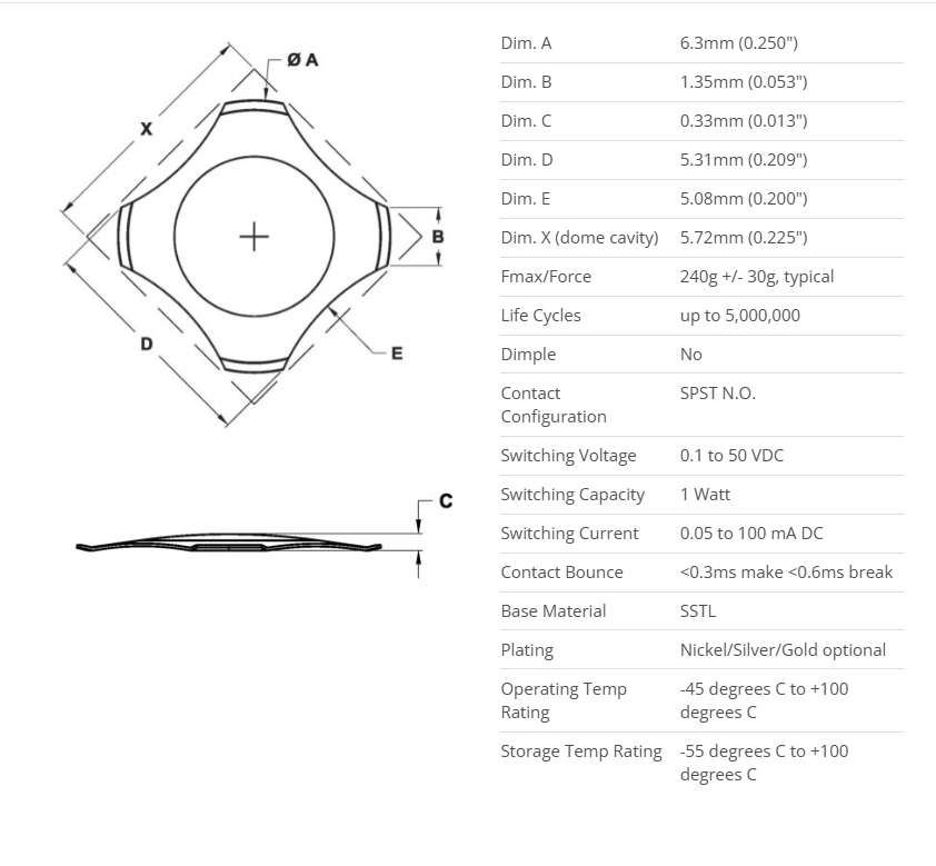 Cross-Shaped Imported Metal Dome Switch GX06240 – 6mm Diameter 240gf Tactile Snap Disc