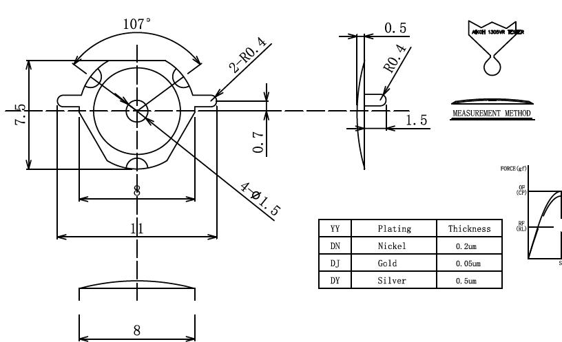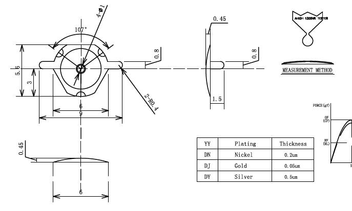 - Operating Force: 1.0N to 5N (φ3mm, φ4mm, φ5mm, φ6mm, φ7mm, φ8mm, φ9mm, φ10mm)